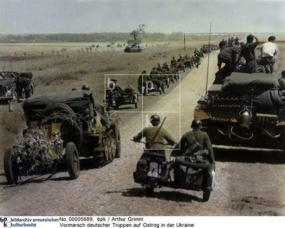 Німецькі колони на підступах до Острога